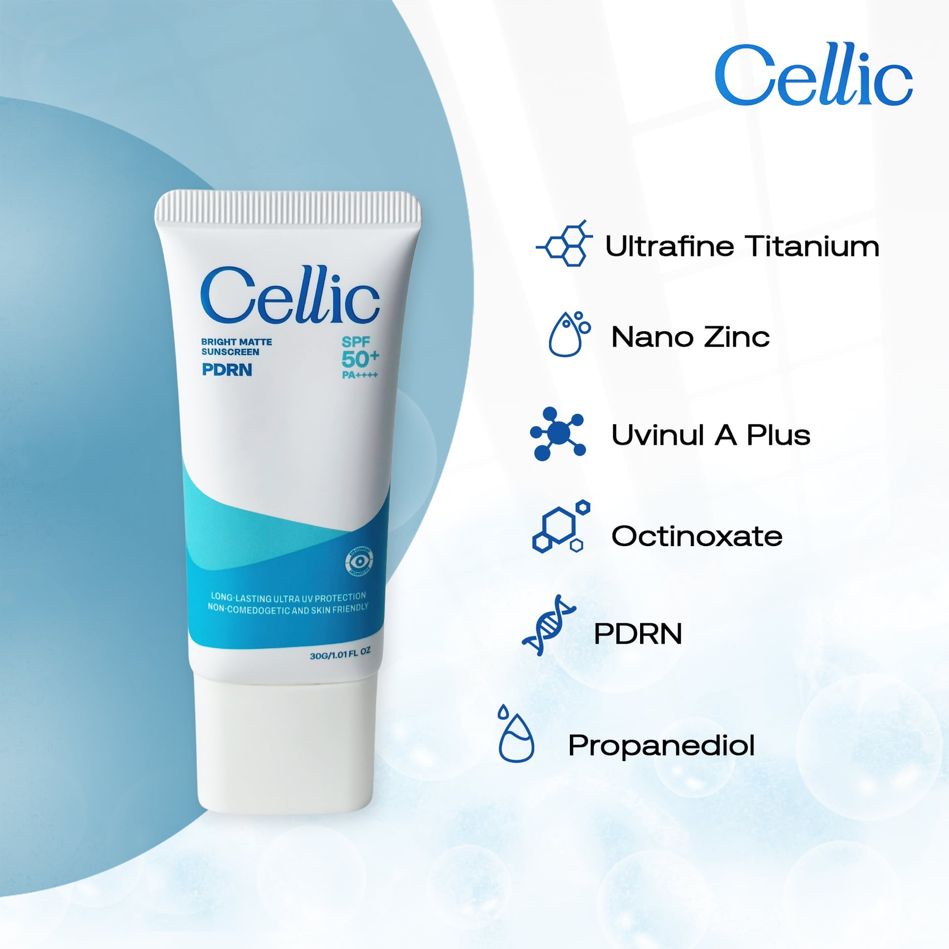 Kem chống nắng Cellic Bright Matte Sunscreen SPF50+ PA++++ ra đời như một giải pháp toàn diện: vừa bảo vệ chống nắng suốt 8h, vừa nâng tone tự nhiên, lại phục hồi và tái tạo da nhờ hoạt chất PDRN rau má.
